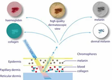 By understanding these interactions and comparing the light sent into skin with light that comes back out, SIAscopy™ is able to determine the nature and position of many of the different components of the skin.